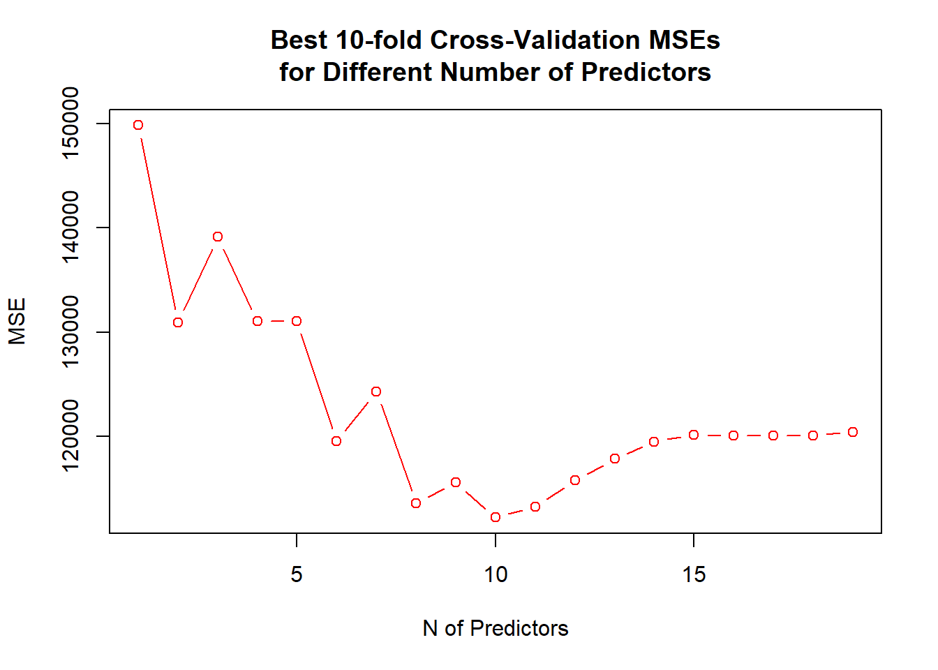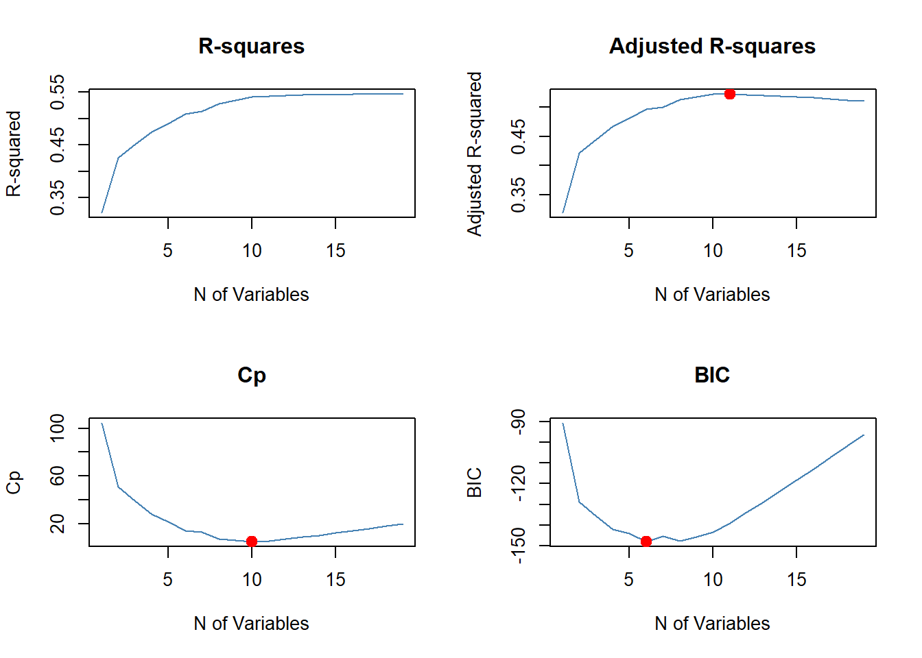 - Here best is defined as having the smallest RSS, or equivalently largest \(R^2\).