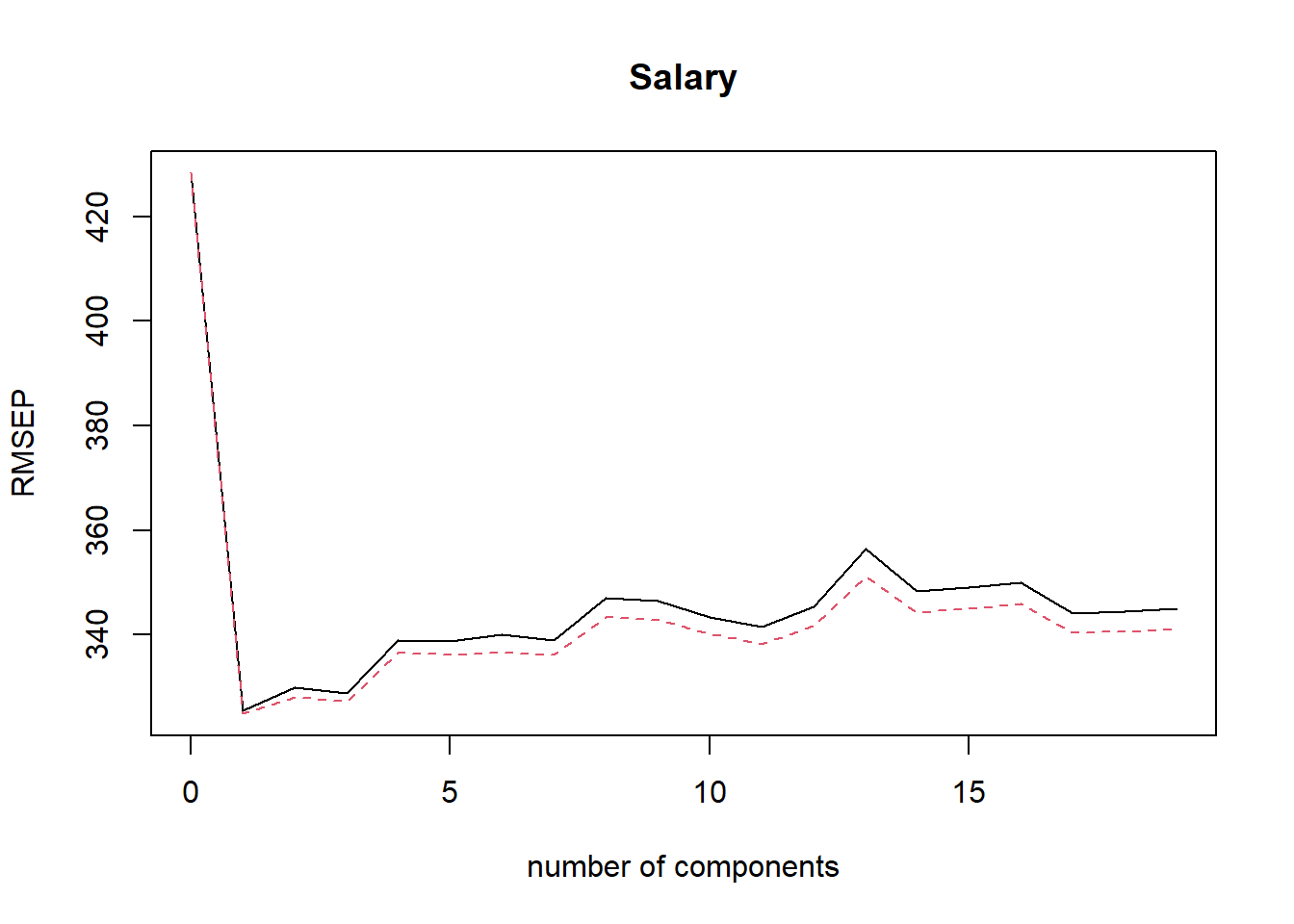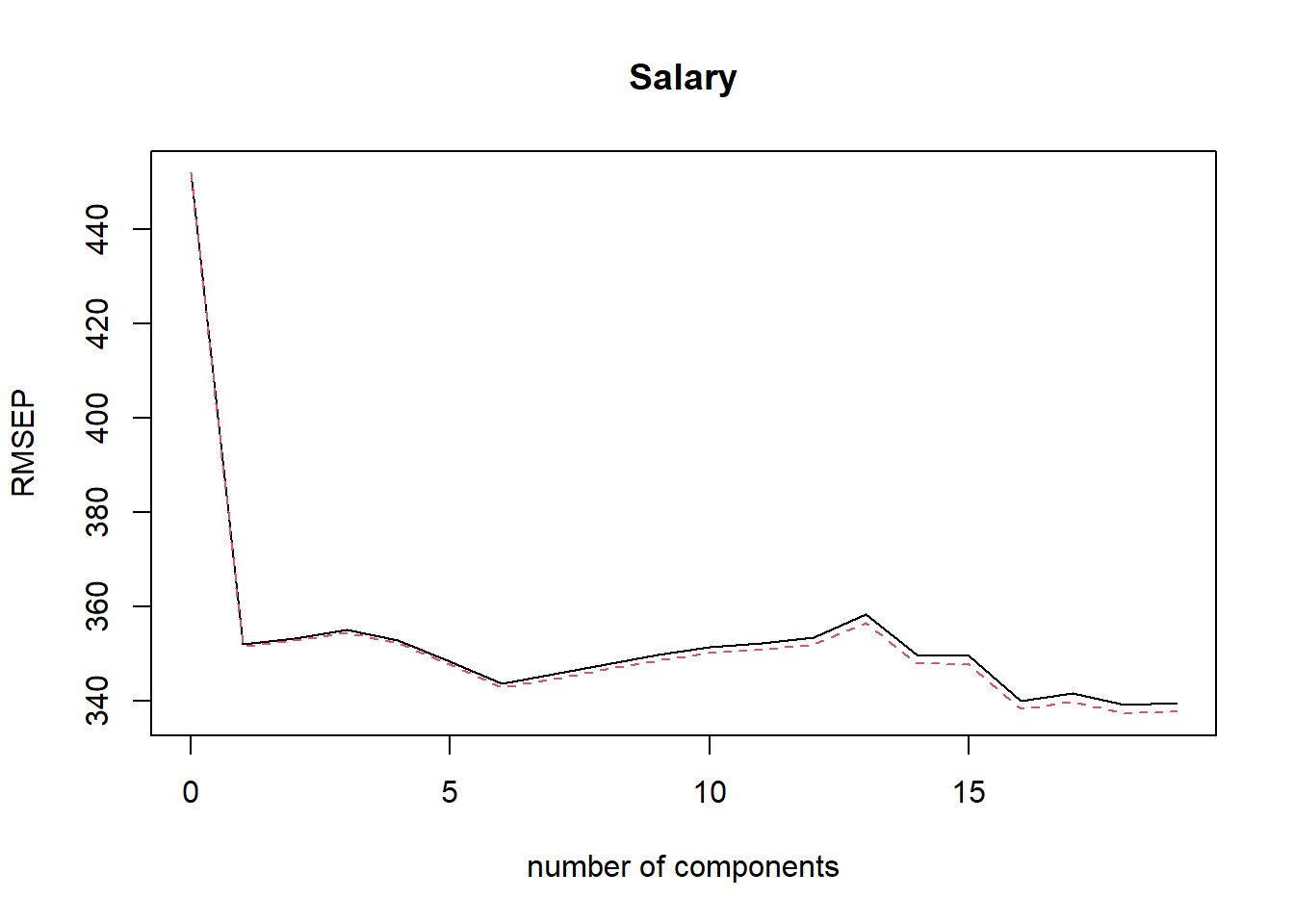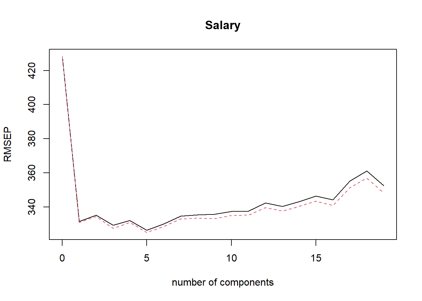 pcr.train <- pcr(Salary ~ ., data = Hitters, subset = train, scale = TRUE,