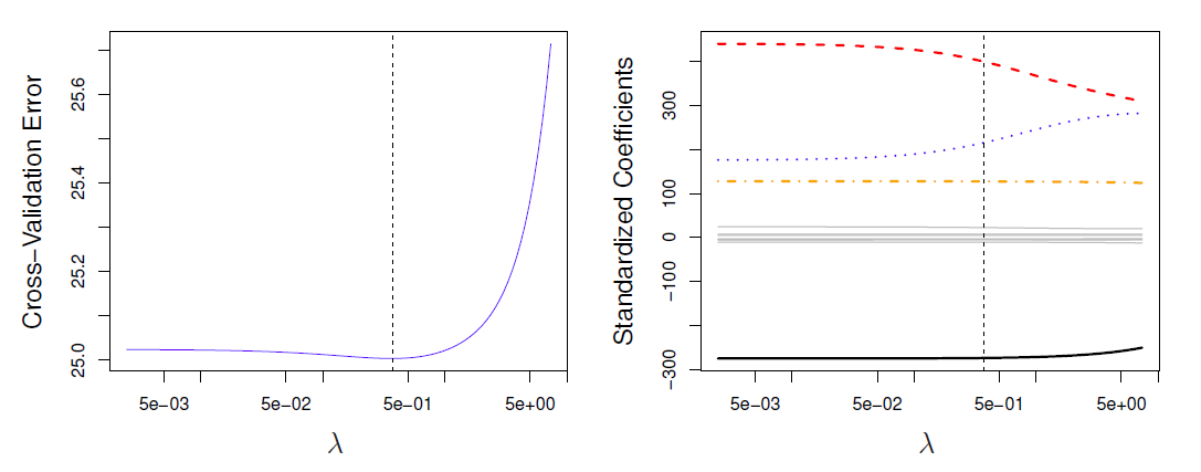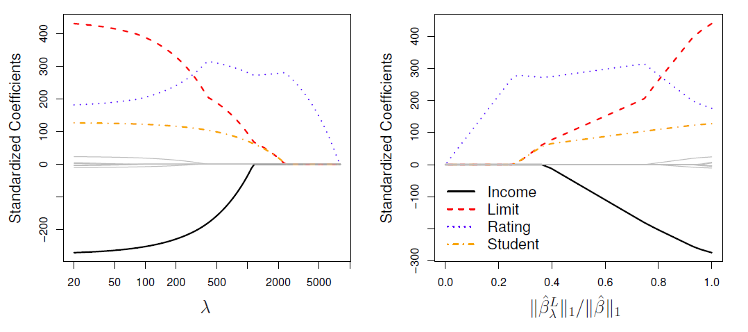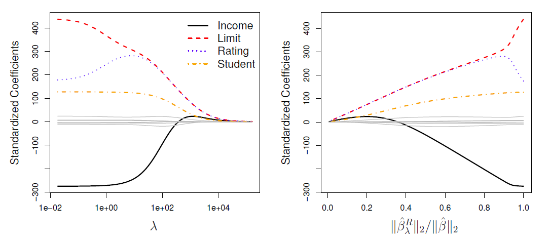 - We fit a model involving all \(p\) predictors, but the estimated coefficients are shrunken towards zero relative to the least squares estimates.