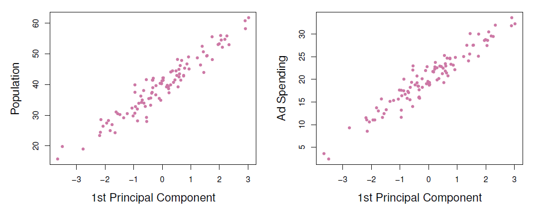 These directions are identified in an unsupervised way, since the response \(Y\) is not used to help determine the principal component directions.